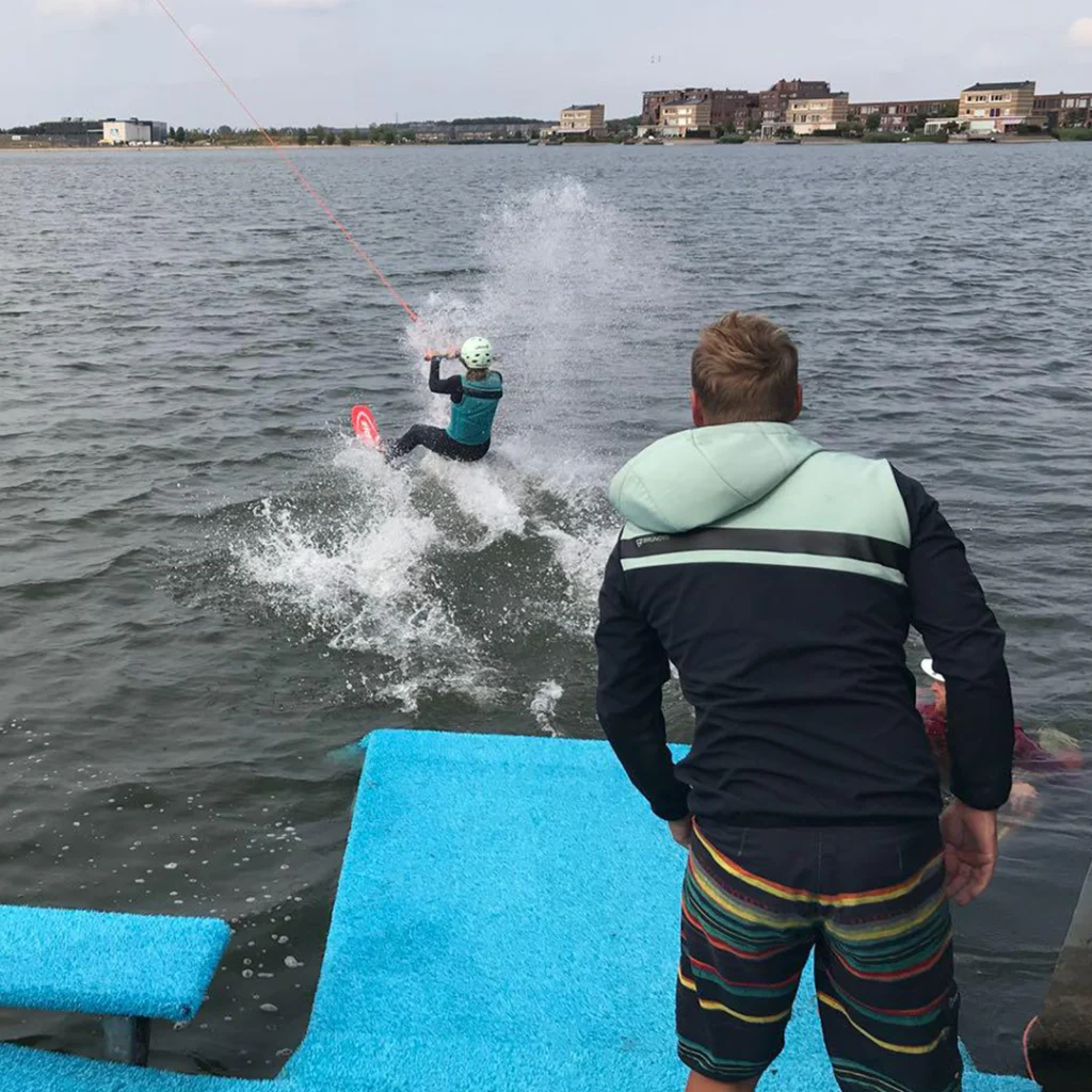 Onze kabelbaan is een van de hoogste en heeft de strakste kabels van Nederland, dit maakt het uitstekend om air tricks te oefenen. Geen zwabberende kabel en lekker veel lijnspanning dus!